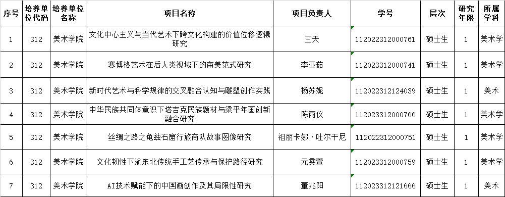 必赢优惠y272net美术学院关于2024年必赢优惠y272net研究生科研创新项目推荐结果的公示