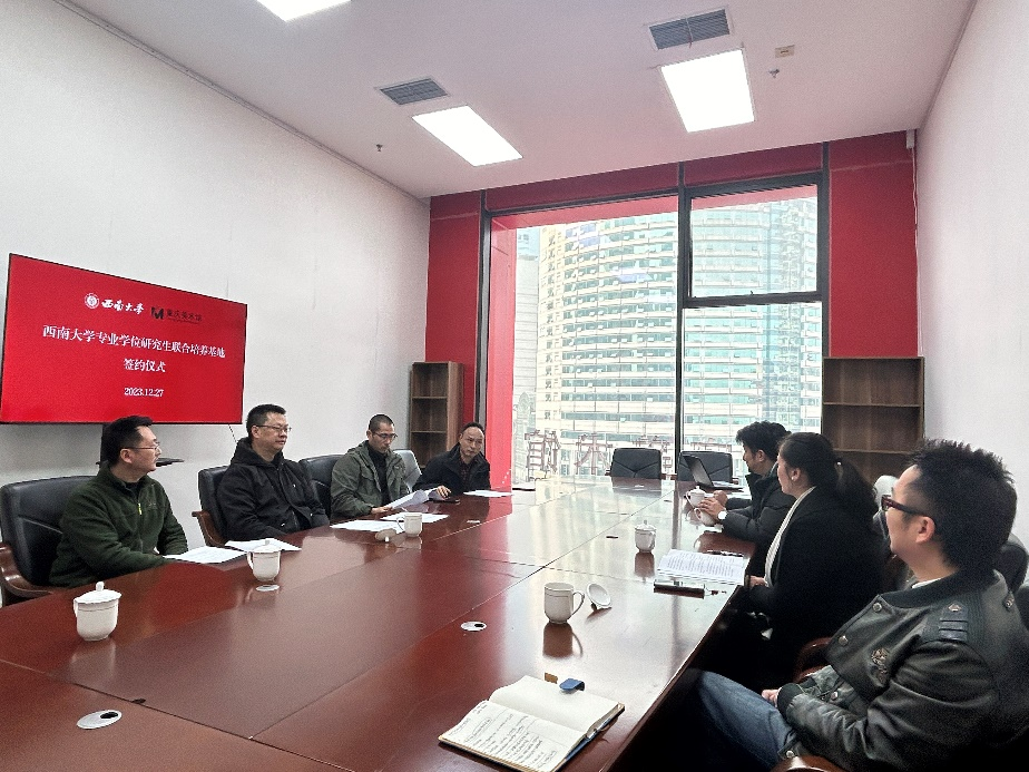 仪式上,学院副院长陈刚就学院研究生培养和日常管理、研究生专业设置等进行介绍。重庆美术馆馆长王发荣对美术学院的到来表示欢迎,并介绍了馆内展览策划、学术研究、人才培养等情况。学院党委书记张瑜阐述了建立联合培养基地的重要意义,对美术馆高度重视联合培养研究生表示感谢,希望深化馆校之间的交流协作,实现优势互补,共同培养专业强、综合素质高的艺术人才,共创馆校合作新机制。随后,双方就提高美术专业学位研究生培养质量、提升馆校合作质量等问题展开探讨。