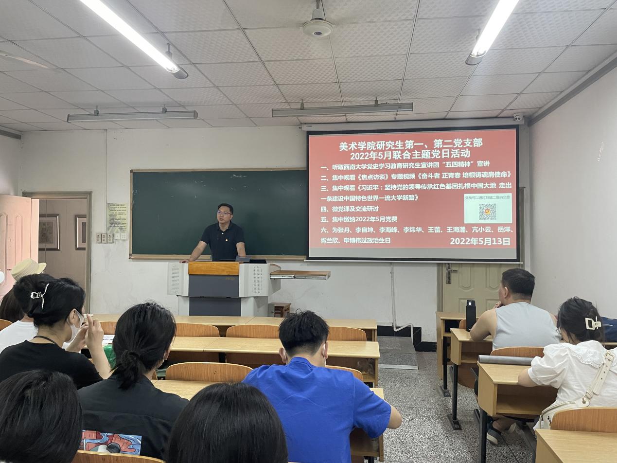 2022年5月13日下午,学院研究生第一、第二党支部在学院106教室开展2022年5月联合主题党日活动。学院党委副书记、研究生第一党支部书记李海峰,学院组织员、研究生第二党支部书记岳洋及两个支部全体党员参会,会议由岳洋主持。