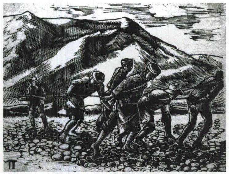 《纤夫》 黑白木刻 1942年